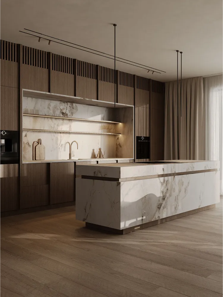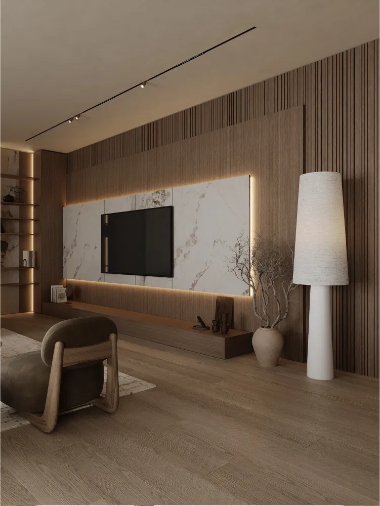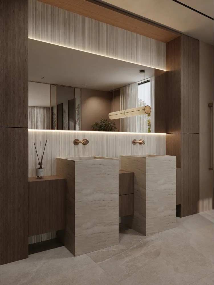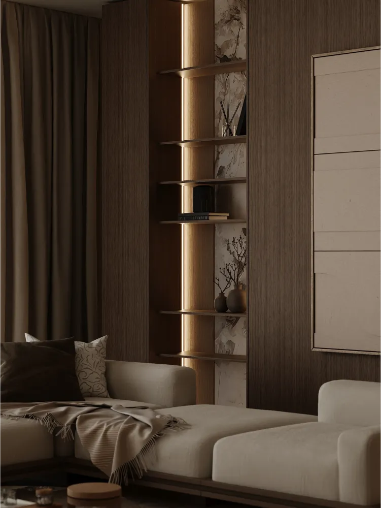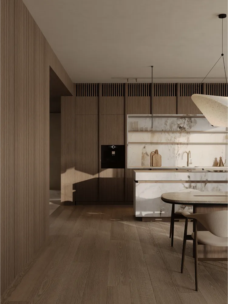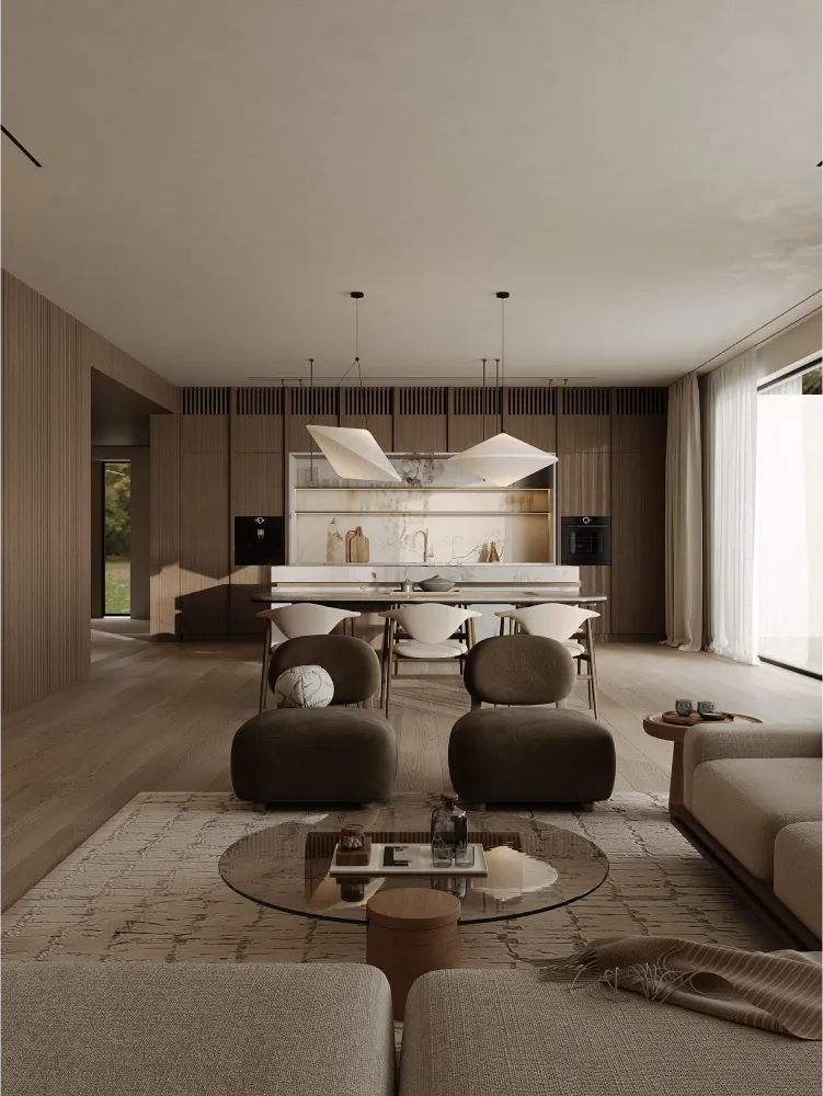 В этом проекте минимализм гармонично сочетается с современной функциональностью - пространство создано так, чтобы быть максимально эргономичным и одновременно эстетически привлекательным. Натуральные материалы подчеркивают близость к природе, а система умного дома позволяет адаптировать интерьер под разные потребности. Это уникальный проект, объединяющий красоту и комфорт повседневной жизни в соответствии с запросами клиента.