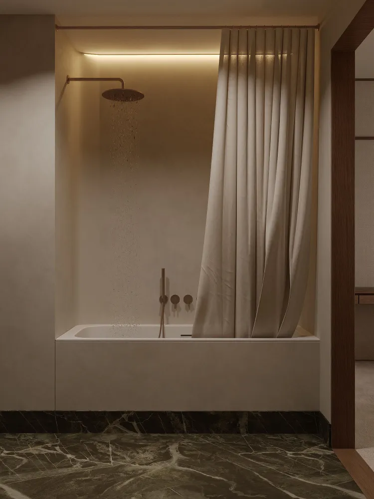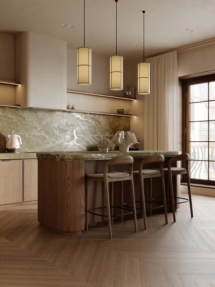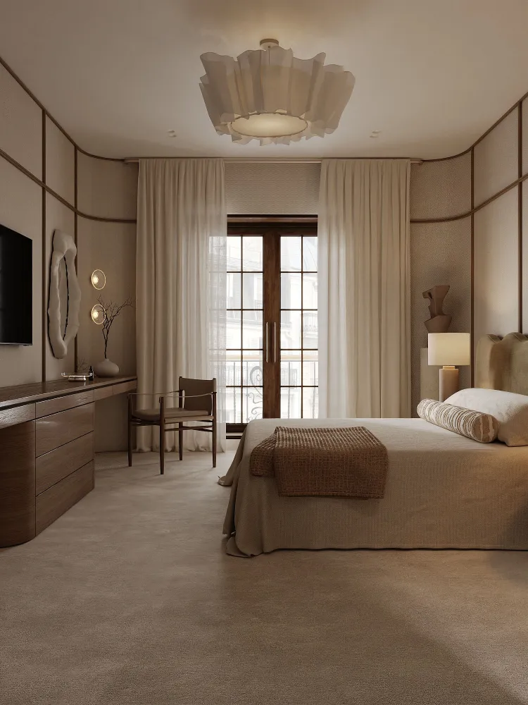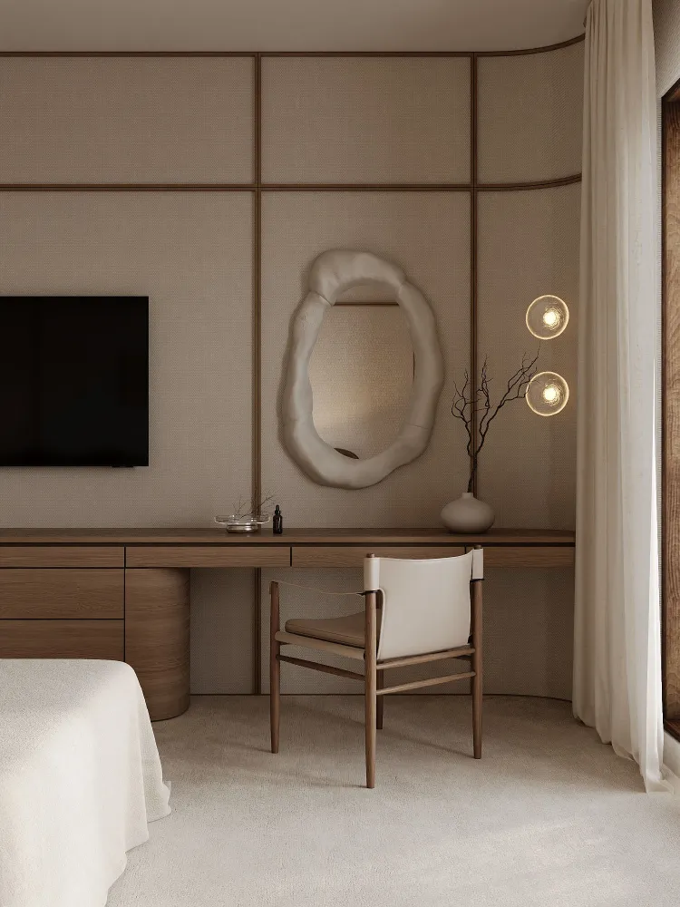 Дизайн- проект выполнен в стиле классического минимализма, где основное внимание уделено использованию натуральных материалов и лаконичных форм. Разнообразные сценарии освещения создают возможность менять атмосферу в зависимости от времени суток и настроения. Каждое решение продумано таким образом, чтобы объединить эстетику и практичность, отражая индивидуальные потребности клиента.